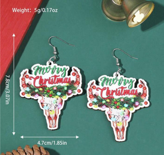 Merry Christmas Wooden Earrings