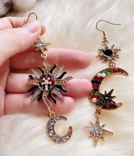 Sun Moon Rhinestone Earrings